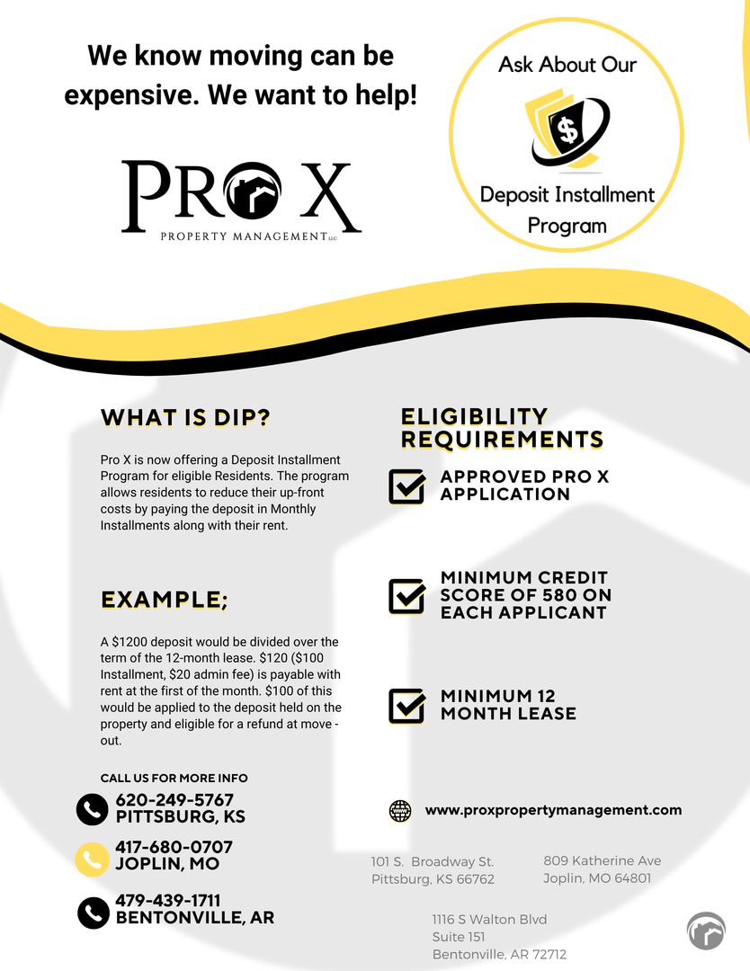 Our office requires an approved rental application before we can lease a property. The application is on our website and is $50 to apply. Visit our website at www.proxpropertybentonville.com