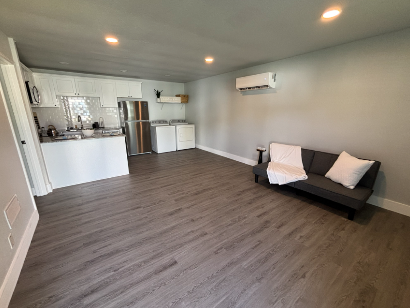 This unit is staged. Furniture will not stay.